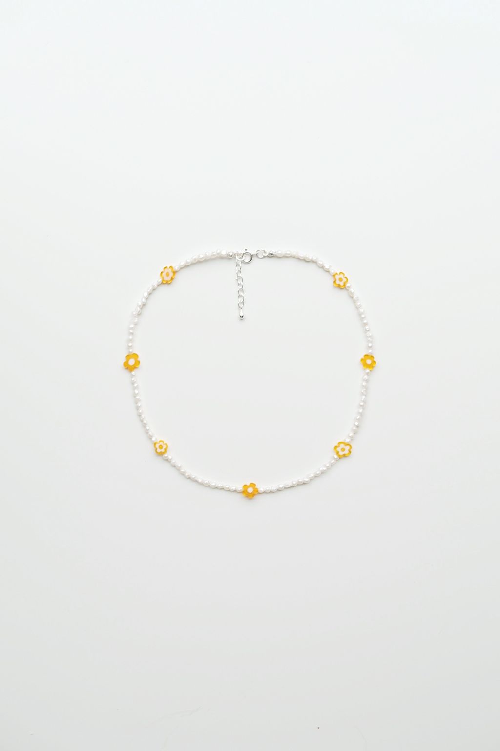 💫限量上架白色小珍珠搭配橘色小花極適合夏天搭配任何背心、洋裝 亮眼奪目ꕀ ꕀ ᐝ材質|琉璃珠、天然淡水珍珠、925純銀總長|37.5cm-40cmꕀ ꕀ ᐝ