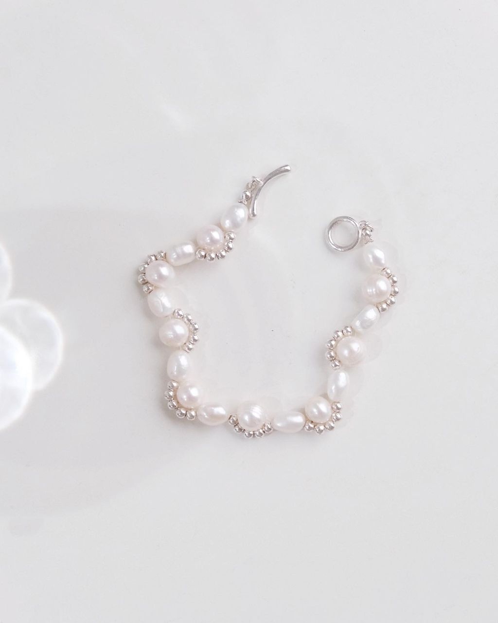 亮白的純銀 纏繞點綴米白珍珠